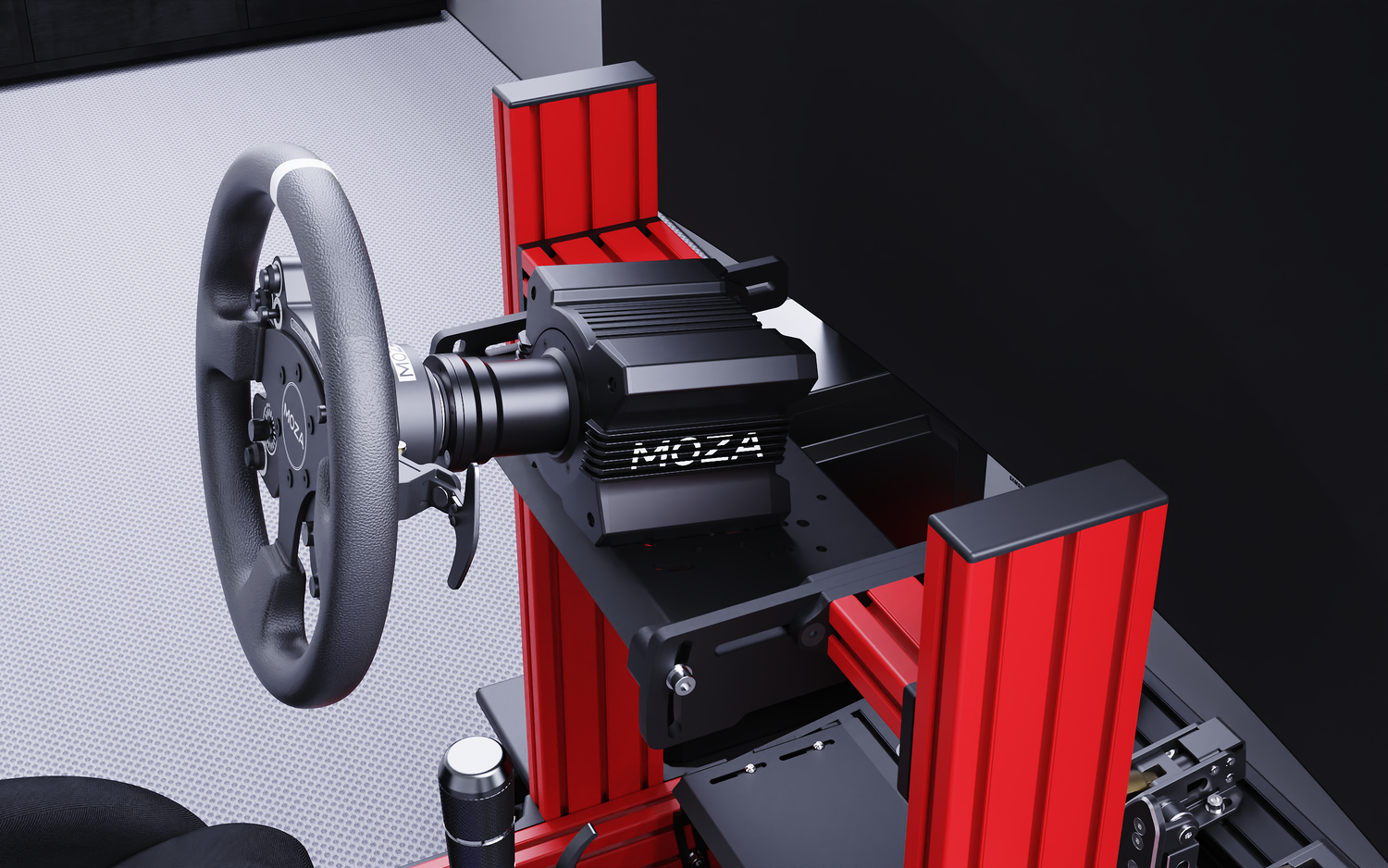 Our dedicated Front Mount wheelbase support (mounting points on the front side of the wheelbase) provides Ultimate Stability as well as Linear, Tilt, and Height adjustment in seconds. Support any High-End front mount wheelbase on the market, including Simucube, VRS, other MiGE Motor-type wheelbases, etc.… Quick Forward-Backwards adjustment via four bolts (most cockpits require moving the whole assembly, including the on-chassis monitor stand, only to be able to adjust the wheelbase position). The assembly comprises thick Laser Cut carbon steel and a matte black powder coat finish. Zero-Flex guaranteed!