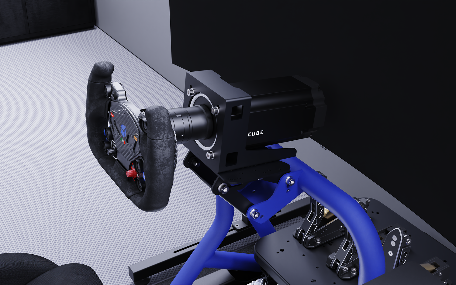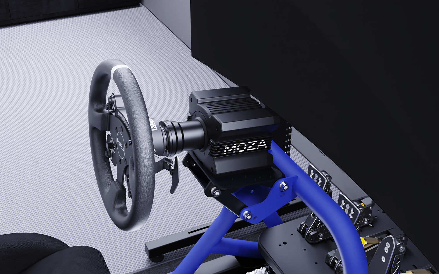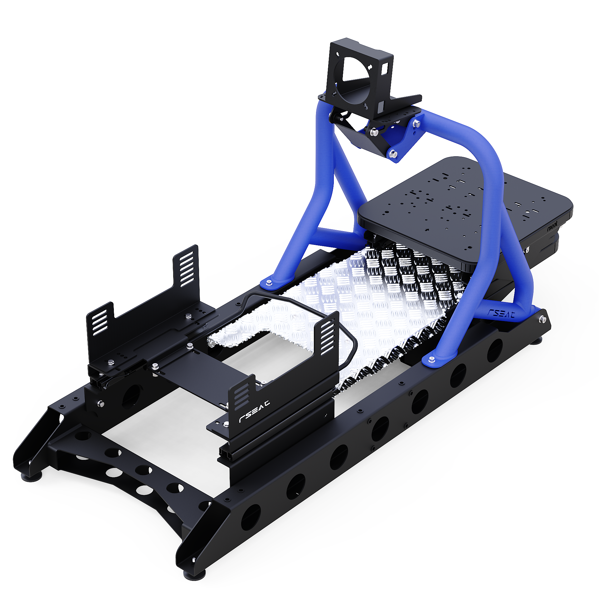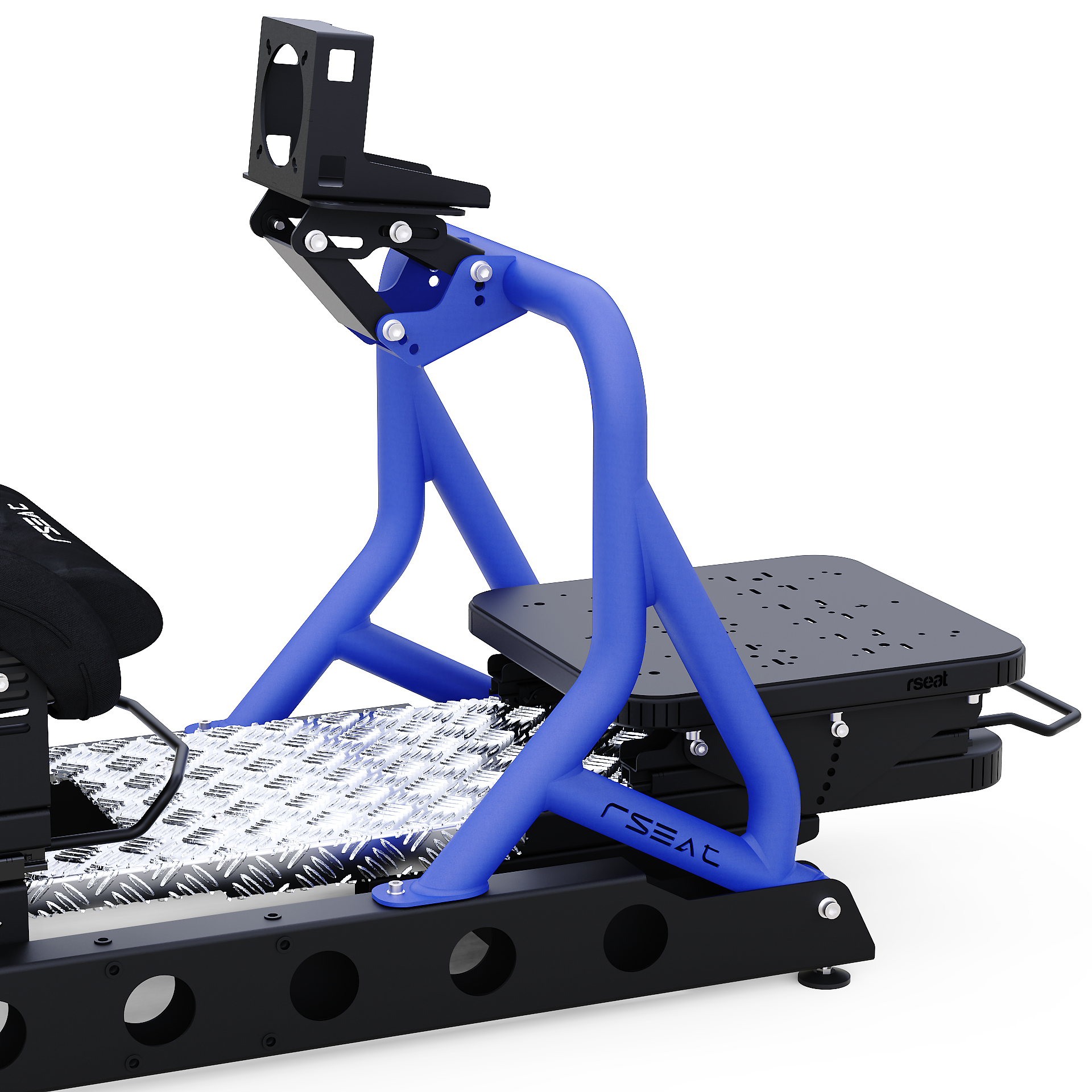 Bottom Mount Wheelbase Support is the most universal solution, and any wheelbase can be mounted on the market. Our new, unique bottom mount support design provides ultimate stability and linear, tilt, and height adjustment in seconds. Supported mounting points fit any common wheelbase on the market, and supported fasteners are M6 and M7. It works with any MOZA, Fanatec®, Logitech, etc.