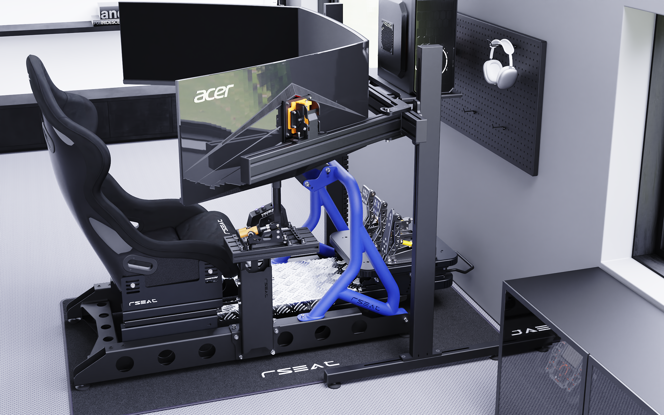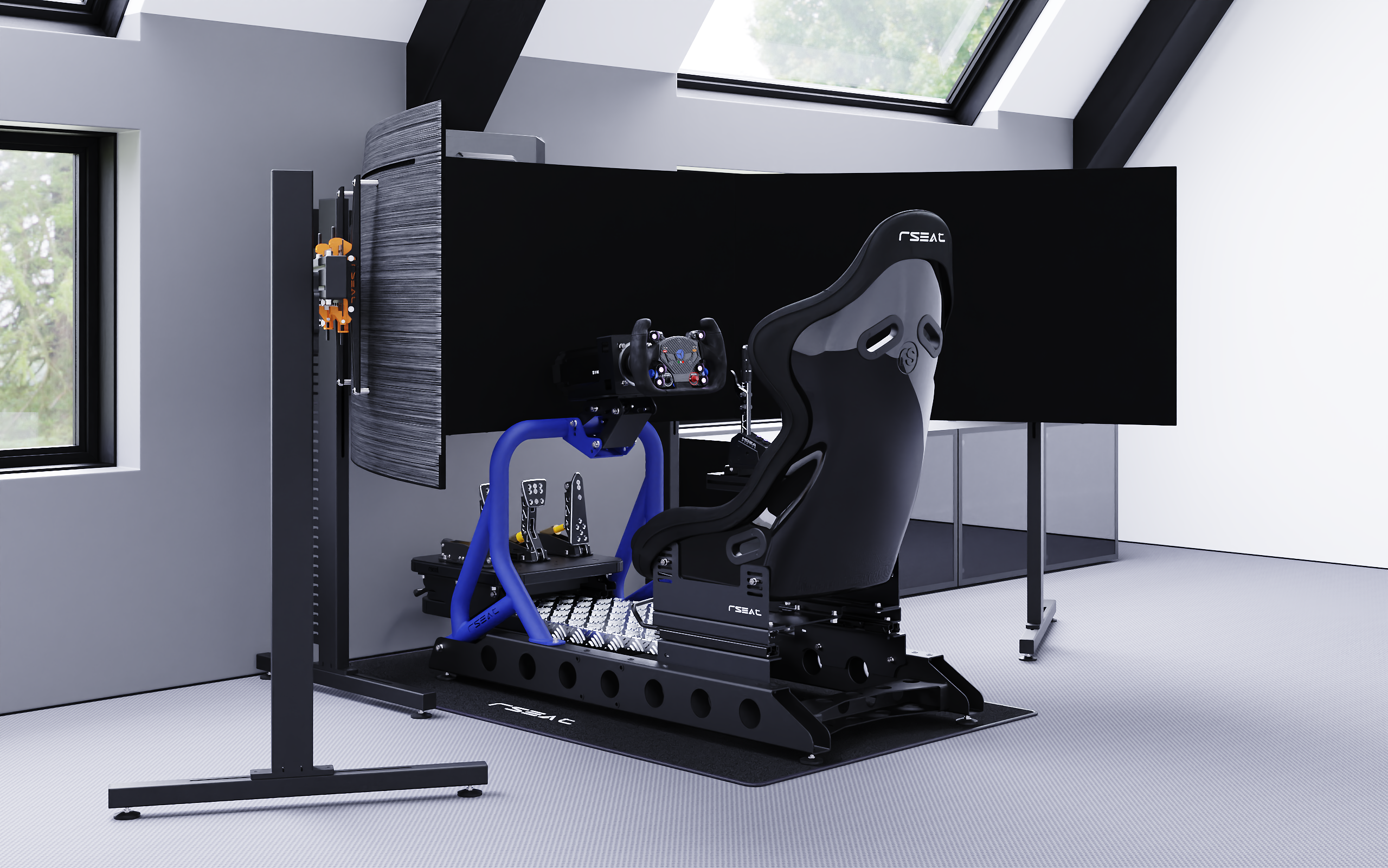 Share the cockpit with your friends and family. The best part is the slider adjustment pedal tray, which can be set in seconds for tall or short users. In combination with the sliding Seat, you have no limitations in terms of quick adjustment. That option comes included with any P1 cockpit, so you can adjust your cockpit to fit anyone.