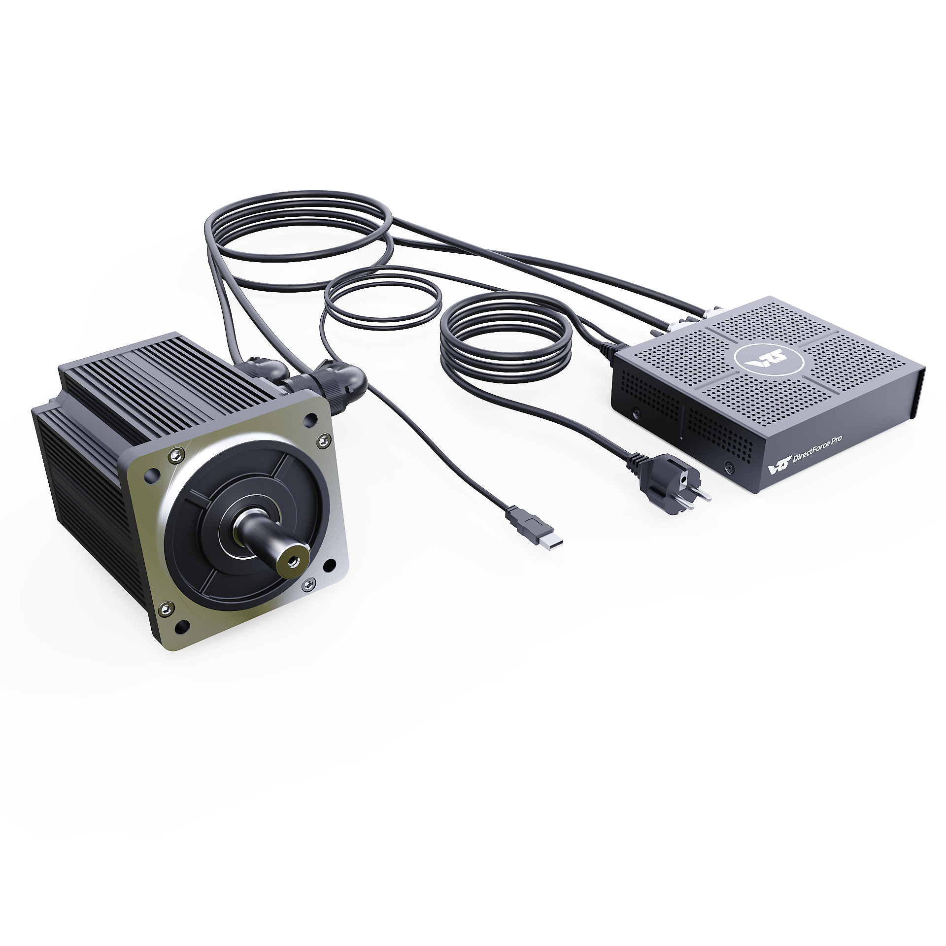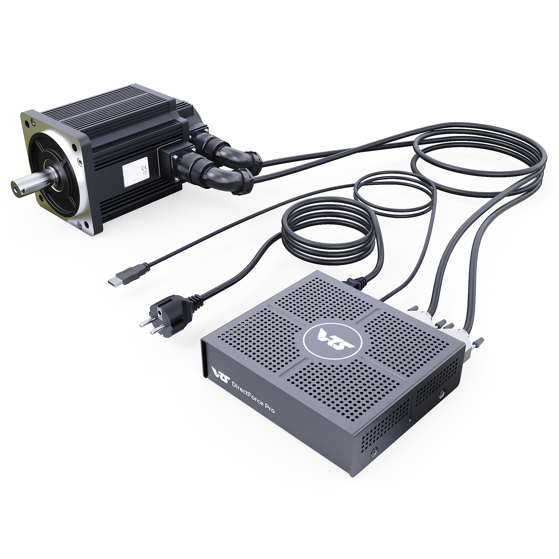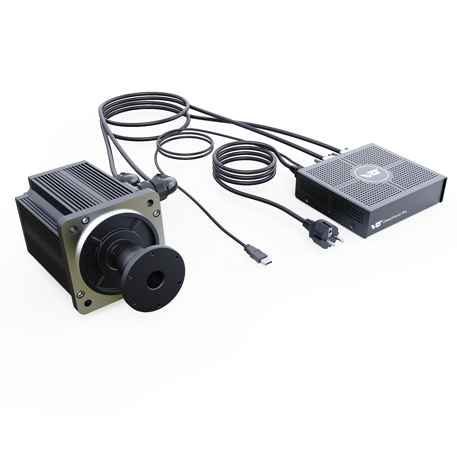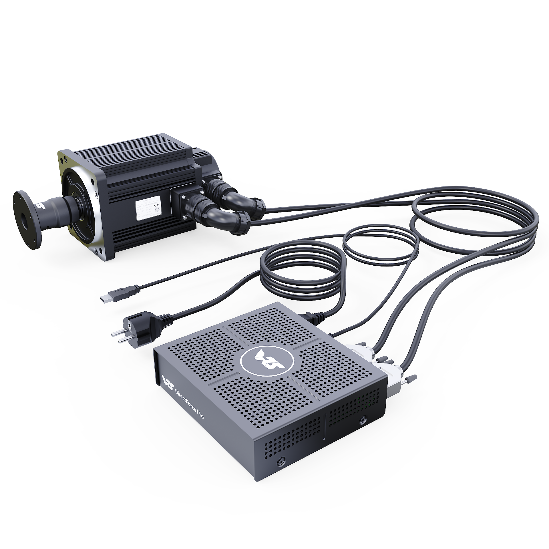 The VRS® DirectForce® Pro Wheel Base includes the VRS DirectForce Pro controller, a custom-engineered all-in-one USB FFB motor controller. It has a compact 5x16x18cm enclosure and a built-in 400W Mean Well PSU. The wheelbase features a 20Nm MiGE motor with a 22-bit BISS-C encoder customized for the VRS DirectForce Pro controller.