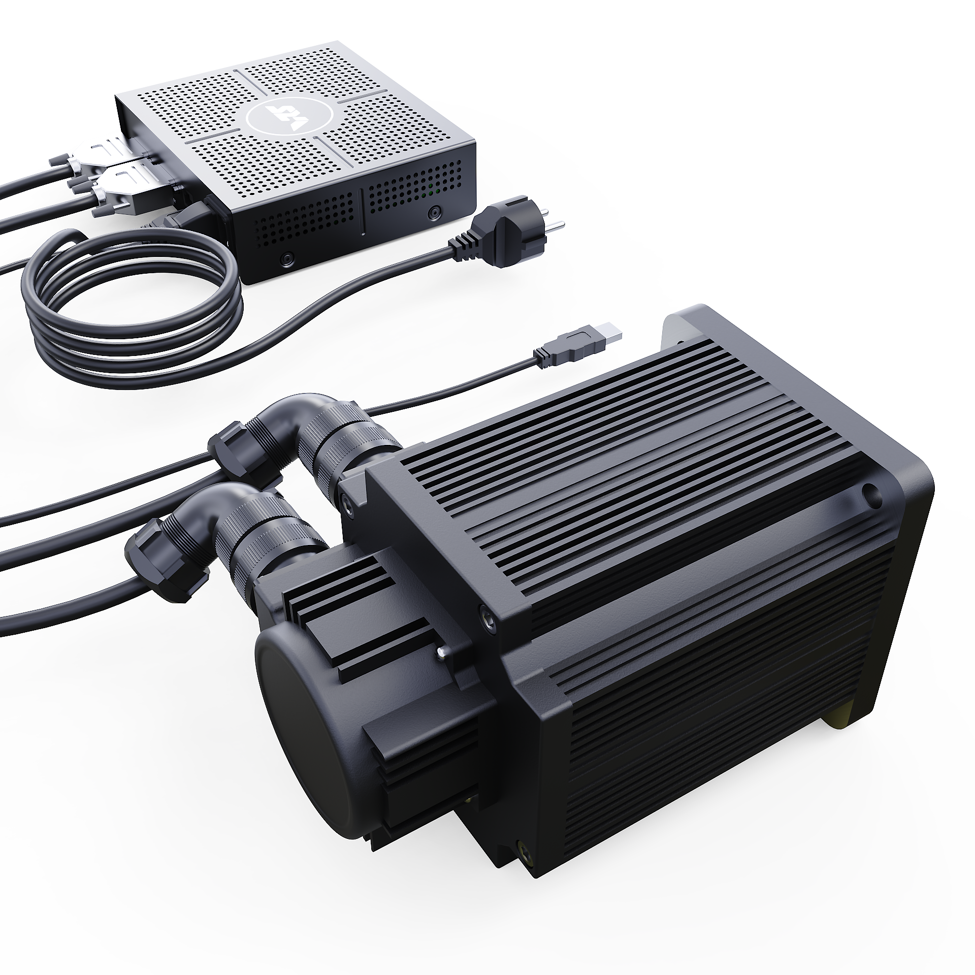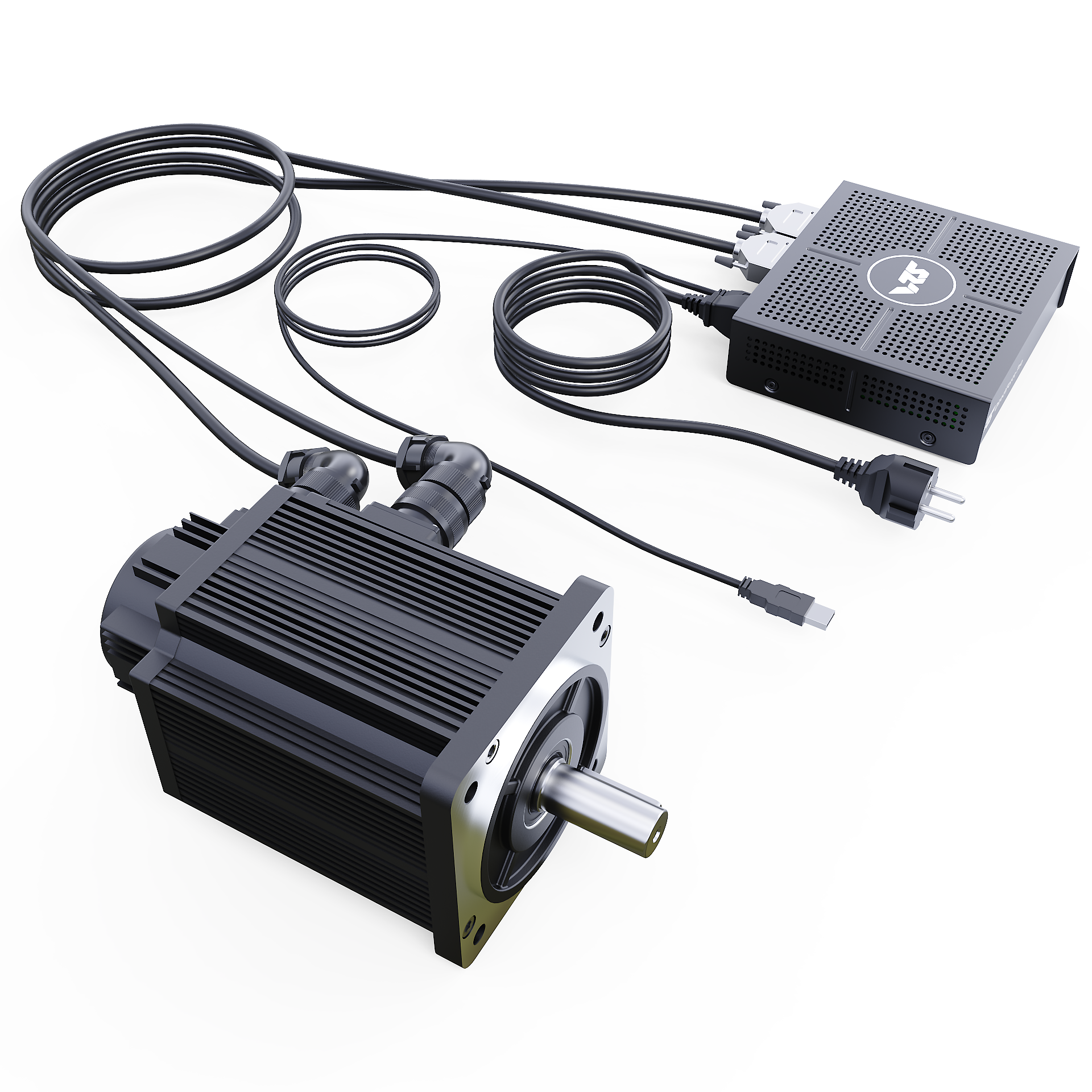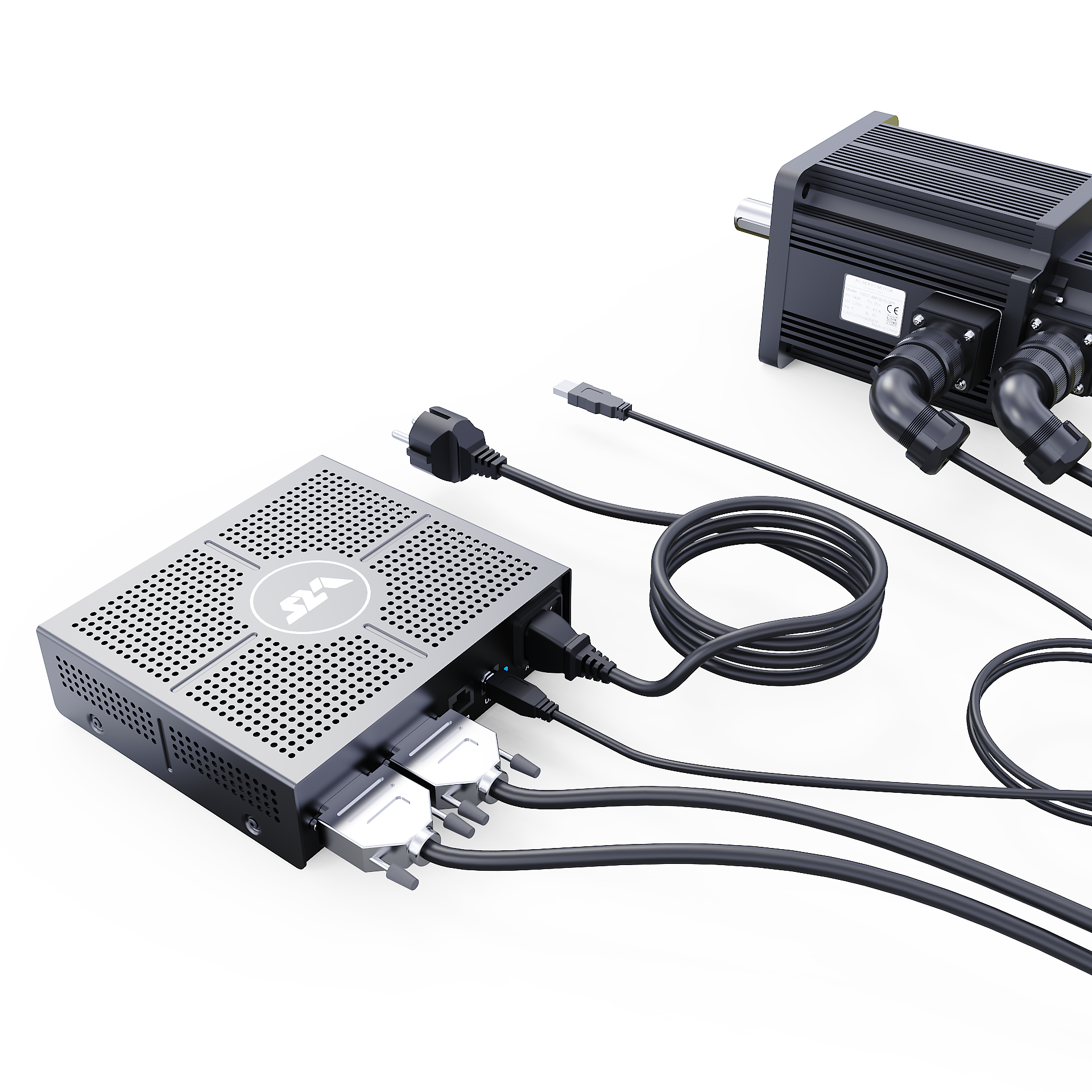 Additionally, it comes with 3-meter motor power and encoder cables with double-shielding and quality metal connectors, a 2-meter double-shielded USB cable, and an AC power cord for the respective region.