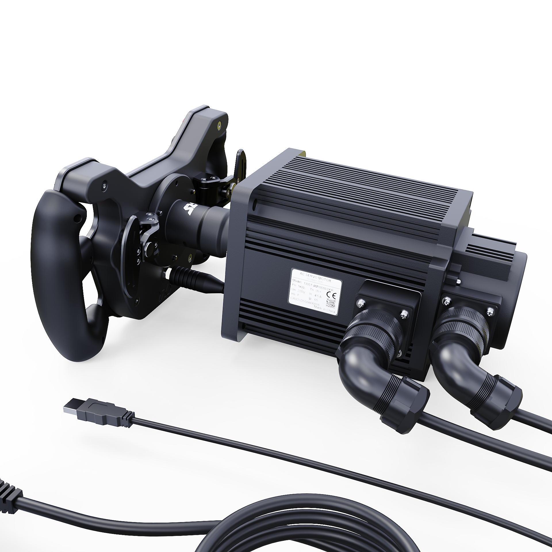 The MiGE motor is operated through the VRS® DirectForce® Pro Wheel Base controller, which is recognized as the system's central control unit. Housed within the compact steel enclosure is a specially designed all-in-one USB force feedback and motor controller board, combined with a 400W fanless PSU and brake resistor.